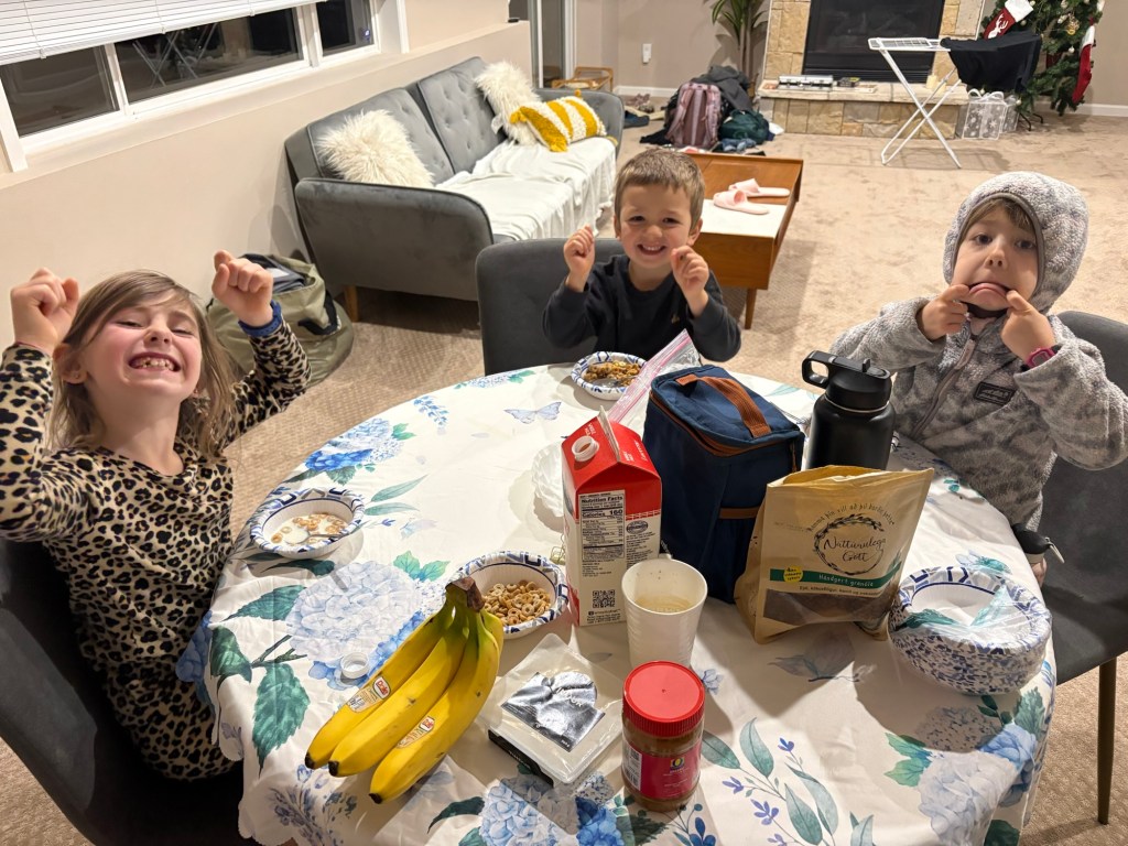 With the time change, the big kids and I got up super early the morning after our long flight. We ate breakfast at 5am, which maybe isn’t all that early for some, but the Hendrychs family members only see that hour when breastfeeding or barfing.